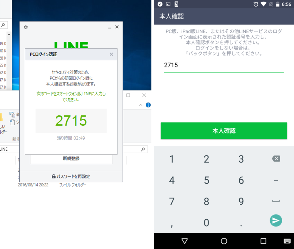 PC版LINEへログインしスマホで本人確認