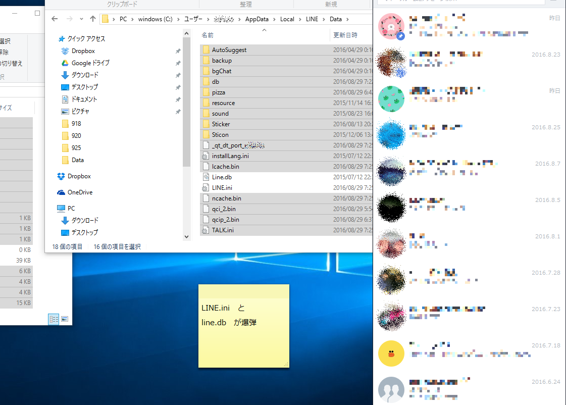 ちなみに「LINE」と名前がつくファイルがアカウント情報を持っていると分かるまでに、コピーしたフォルダをすべて書き戻し、再び認証になって、怪しそうなファイルを除いてコピーして、再び認証になって・・・と格闘を繰り返しました・・・。その関係で付箋にメモが残っています。